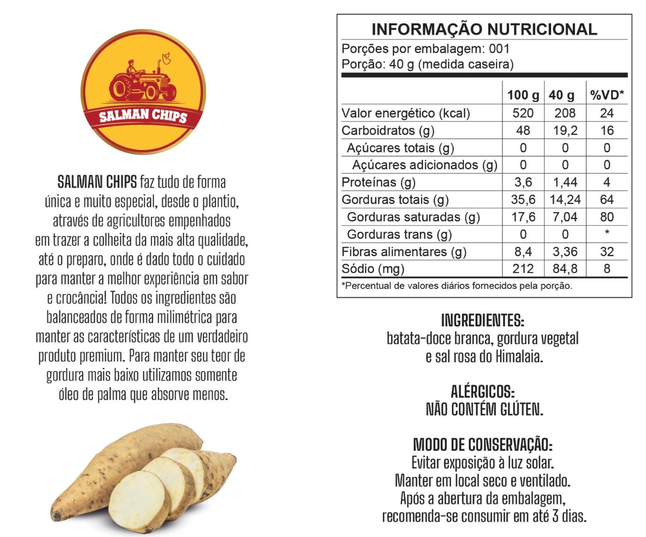O Mix de Batatas Chips Salman é uma combinação perfeita de sabores e texturas. Reunimos uma seleção especial de batatas variadas, incluindo batata- doce, batata-doce roxa e batata baroa, para criar um mix único e saboroso. Cada chips é cuidadosamente preparado para garantir a crocância ideal, resultando em um snack versátil e delicioso que agrada a todos os paladares.
